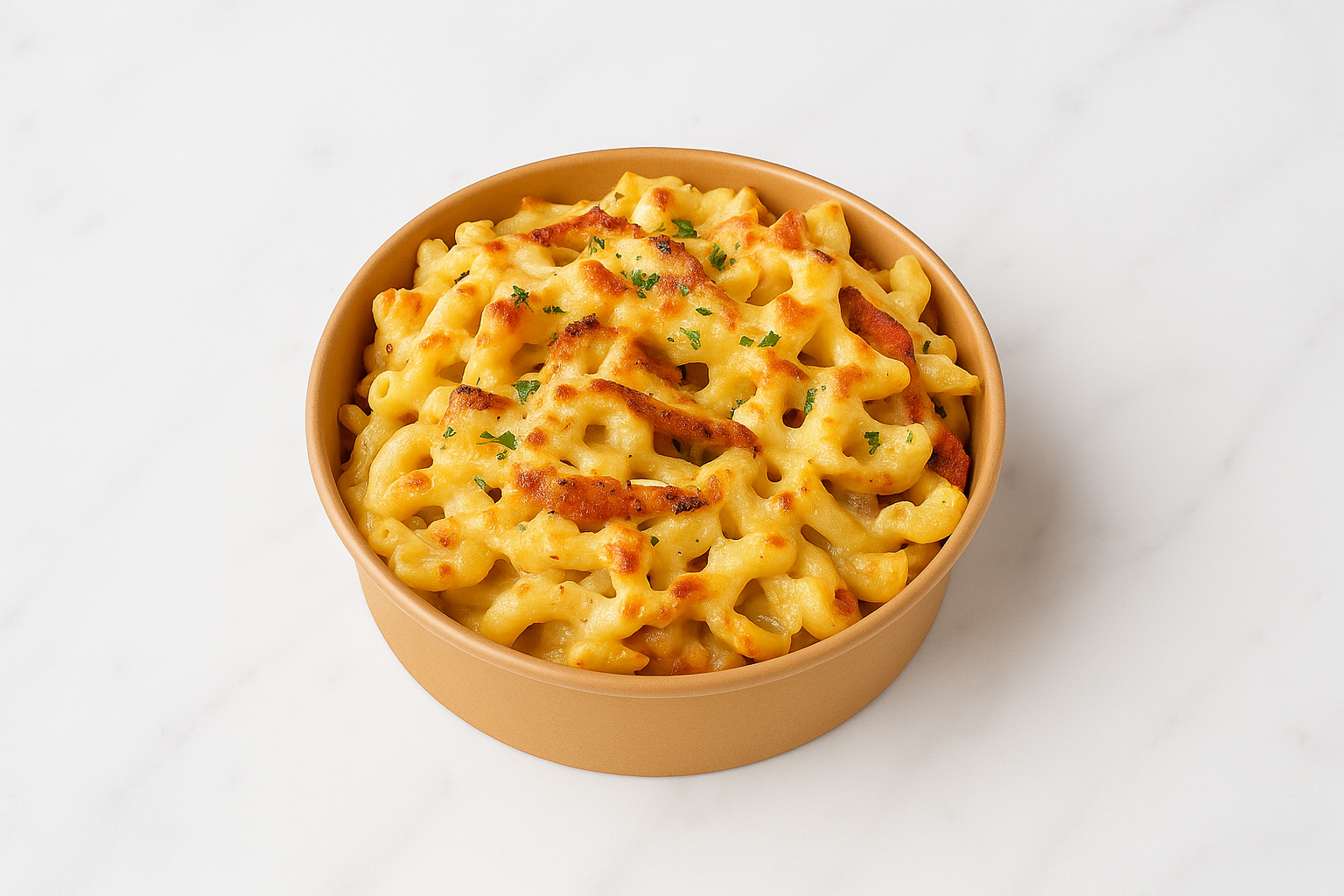 Un délicieux gratin de coquillettes au cheddar et à la mozzarella, relevé de morceaux de poulet tendre à la crème. Doré au four pour une croûte fondante et savoureuse